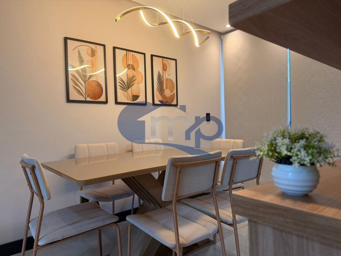 O imóvel conta com 2 suítes, garantindo privacidade e conforto para toda a família. A área social é bem distribuída, com sala de estar e jantar integradas, proporcionando amplitude e funcionalidade. A cozinha é prática e integrada ao ambiente, além de lavabo para maior comodidade.