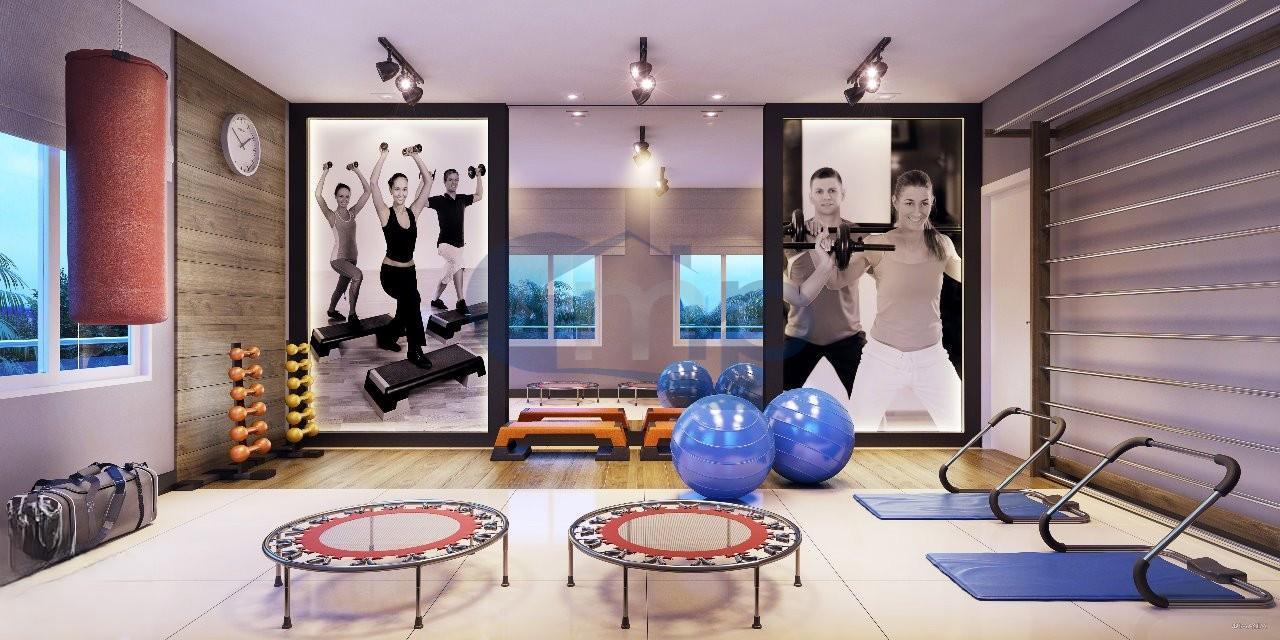 Condomínio conta com piscina adulta e infantil, salão de festas, sala de jogos, playground, solarium, terraço com pergolados, sala de cinema, brinquedoteca, espaço gourmet, academia e dois elevadores.