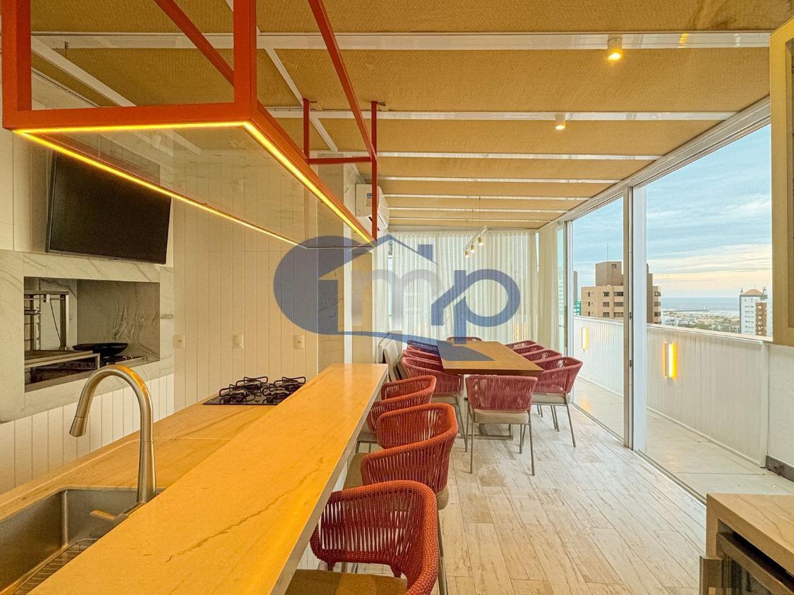 Cobertura mobiliada com 258m² em Torres, pensada para quem valoriza espaço, vista e privacidade. São três dormitórios, sendo uma suíte, além de sala de estar e jantar integradas que ampliam a convivência no dia a dia.
