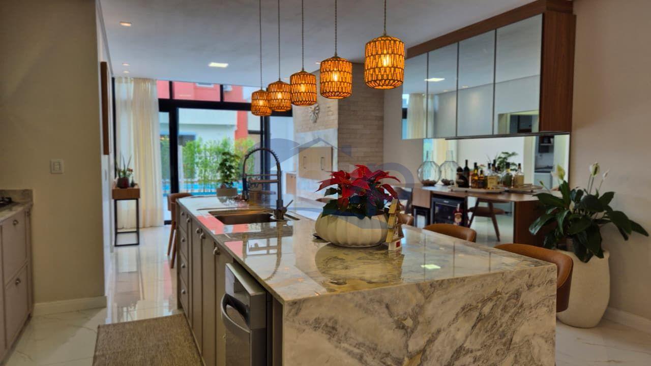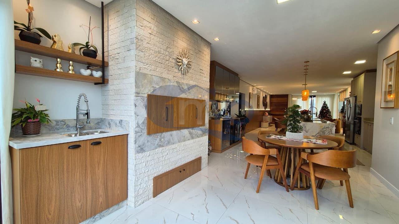 São três quartos, incluindo uma suíte master com closet e hidromassagem, além de ambientes amplos e bem integrados. A cozinha se conecta ao espaço gourmet com churrasqueira, criando um ambiente ideal para reunir família e amigos com naturalidade.