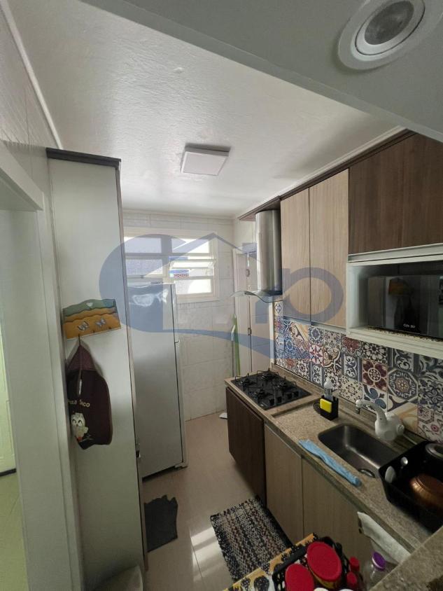 Com dois dormitórios, sendo uma suíte, o espaço atende bem casais ou pequenas famílias. A sala de estar e jantar integradas criam um ambiente funcional e acolhedor, conectado à cozinha e à área de serviço.